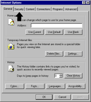 Step 1 - From the "Tools" section, select "Internet Options", then click the "Security" tab (shown below).