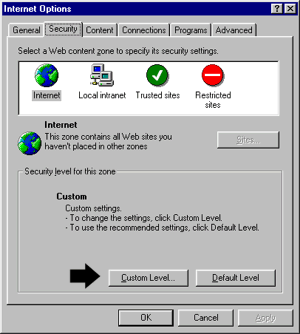 Step 2 - In the Security area, select the "Custom Level" button (shown below).